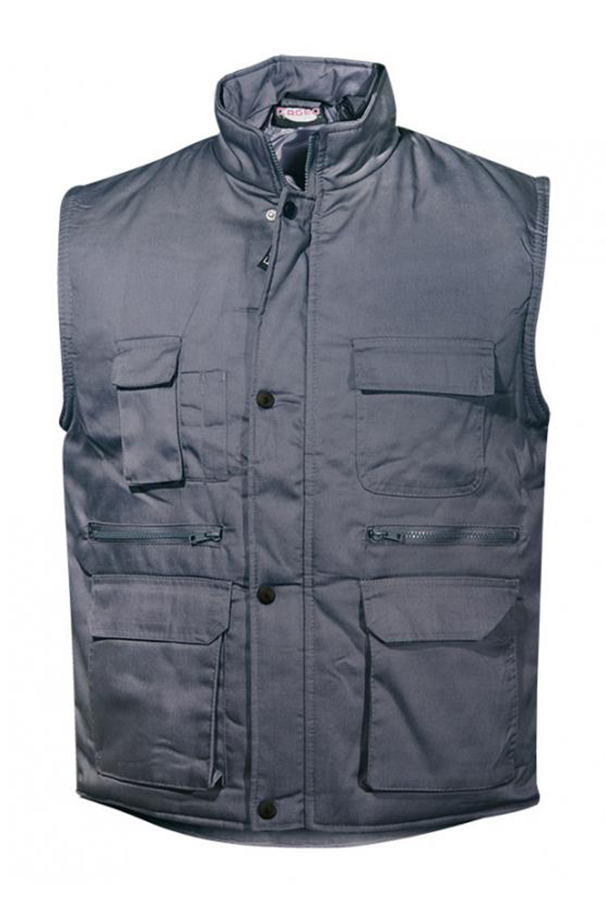 Γιλέκο υφασμάτινο με επένδυση και πολλές εργονομικές τσέπες. Μία άνω θήκη για κινητό και στυλό, μία άνω τσέπη βέλκρο, δύο τσέπες με φερμουάρ και δύο μεγάλες τσέπες κάτω βέλκρο. Λάστιχα στους ώμους για στεγανότητα από τον αέρα και μαύρα κουμπιά μπροστά για τέλεια εφαρμογή.