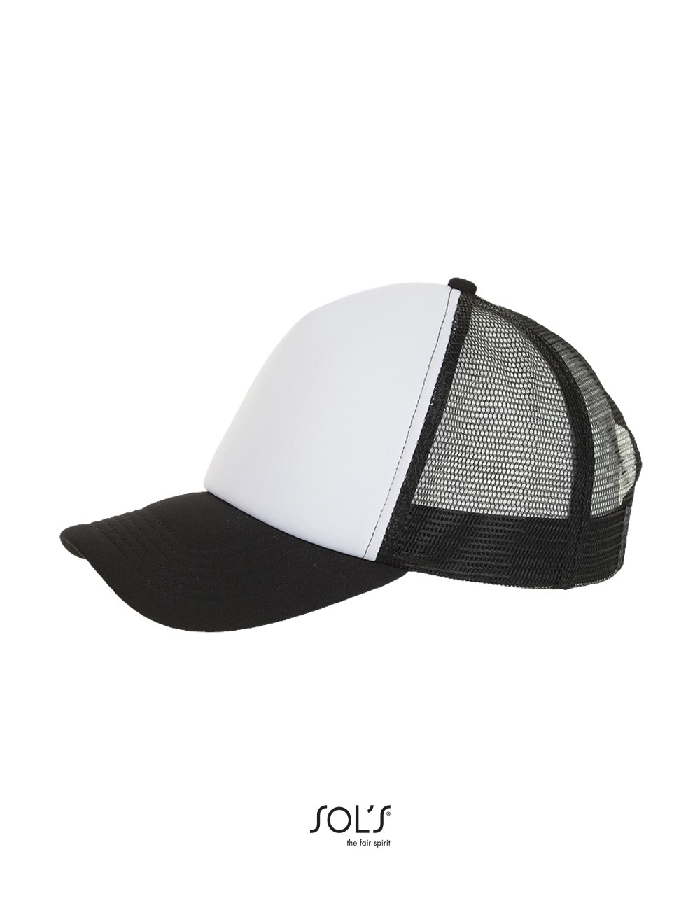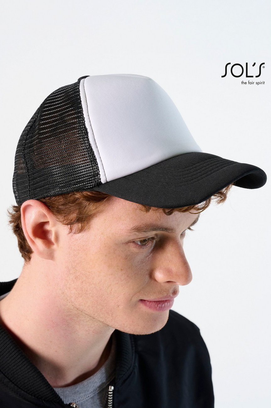 Δίχτυ στο πίσω μέρος – Σφουγγάρι 5mm στο μέτωπο και 3mm στην κορυφή – Κυρτό γείσο με 6 ραφές – Μαλακό μέτωπο – Ρυθμιζόμενο πλαστικό κλείσιμο – Ιδανικό για εξάχνωση (sublimation)